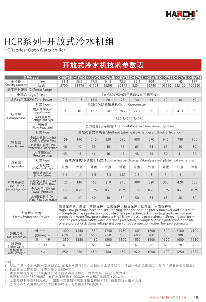 6、為保證使用安全,機組內(nèi)置漏電保護器、相位保護、過載保護、電流保護;系統(tǒng)安裝了高、低壓保護傳感器,為防止缺水或循環(huán)水系統(tǒng)內(nèi)部結(jié)冰,機組安裝了流量開關(guān)和低液位保護裝置。
